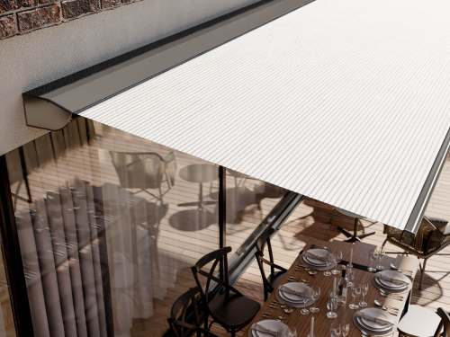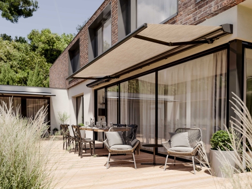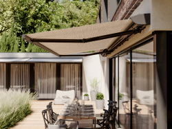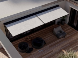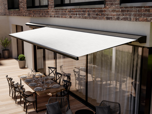 Terrassmarkis Nordic Classic är en modern och kassettfri markis som ger effektivt solskydd och förvandlar din uteplats till en skön oas. Den passar både privata terrasser, altaner och offentliga miljöer där både design och funktion spelar roll.