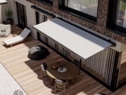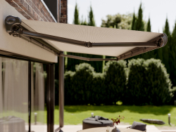 Terrassmarkis Nordic Design är en elegant och robust terrassmarkis i kassettutförande. Kassettens huvuduppgift är att skydda duken och mekanismen från regn, snö och smuts, vilket gör att markisen håller längre och behåller sitt utseende även under tuffa väderförhållanden.