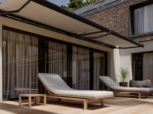 Kassettlösningen ger ett rent och exklusivt uttryck, vilket förstärker helhetsintrycket av bostadens exteriör. Den passar både privata terrasser, altaner och offentliga miljöer där både design och funktion spelar roll.